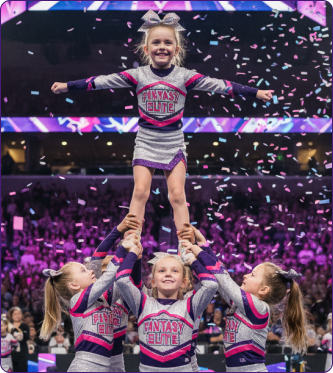 • Cheer Teams: Novice, Prep, and Elite squads for athletes ready to compete and grow.